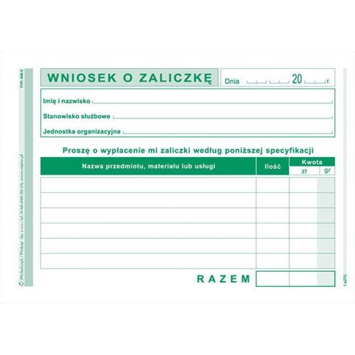 WNIOSEK O ZALICZKĘ 408-5