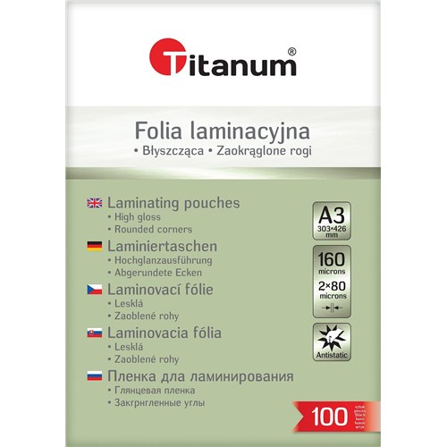 Folia do laminowania Titanum A3 - przezroczysty 80 mic.