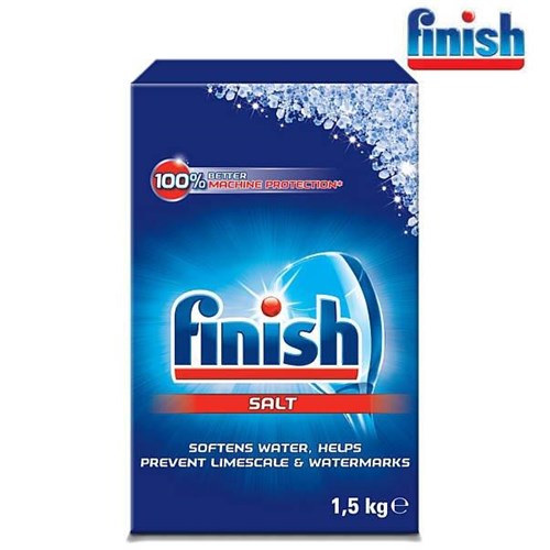 Finish Sól do zmywarki gruboziarnista 1,5kg. Po zastosowaniu soli naczynia są bezwzględnie czyste, posiadają kryształowy połysk i blask. Stosowanie soli przy każdym zmywaniu chroni zmywarkę przed osadzaniem się kamienia. Środki zawarte w soli do zmywarek Finish zmiękczają wodę i chronią zmywarkę przed korozją.