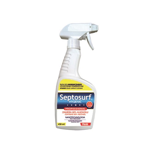 Stosować go tylko do powierzchni wstępnie wyczyszczonych z brudu za pomocą tradycyjnych środków czystości. Septosurf Hygienic to produkt, który należy stosować w atomizerze lub przez naniesienie go na powierzchnie przy pomocy czystej suchej szmatki. Po naniesieniu atomizerem na powierzchnię nie należy go dodatkowo wcierać. Jego skuteczna wydajność wynosi 5 ml na metr kwadratowy. Po naniesieniu go na powierzchnię należy pozostawić przez 15 minut do momentu całkowitego wyschnięcia, odparowania.